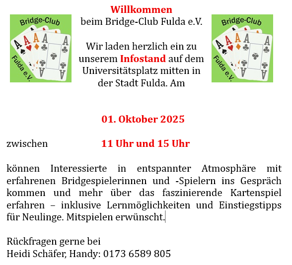 Der Weißenburger Bridgeclub lädt ein Bridge kennenzulernen und die Karten auch mal selbst in die Hand zu nehmen.